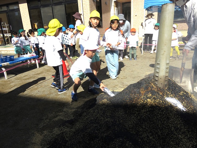 やきいも会 2023/10/30 玉ノ江こども園名物「やきいも会」、朝からもくもくとあがる煙の周りをこども達が取りまきました。 もも組(4歳児)が掘ってきたお芋がほくほくになって、とても美味しい焼き芋になりました。