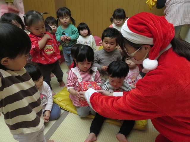ひとりひとりサンタさんからプレゼントをもらって、子ども達も嬉しそうです🎁