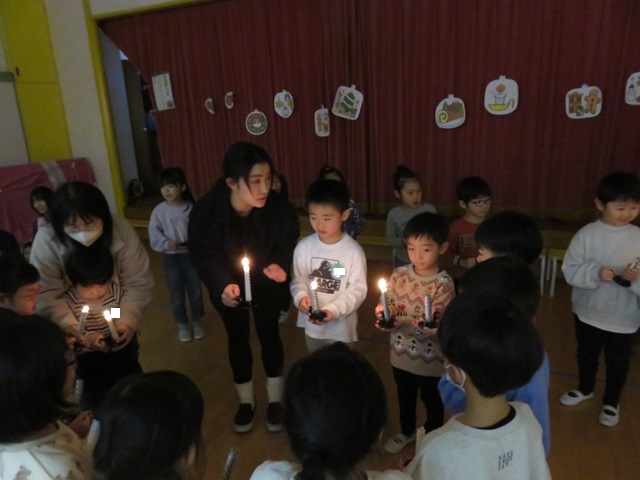 次は、ふじ組さんのキャンドルサービス🕯ローソクにそーっと火を灯していきます。